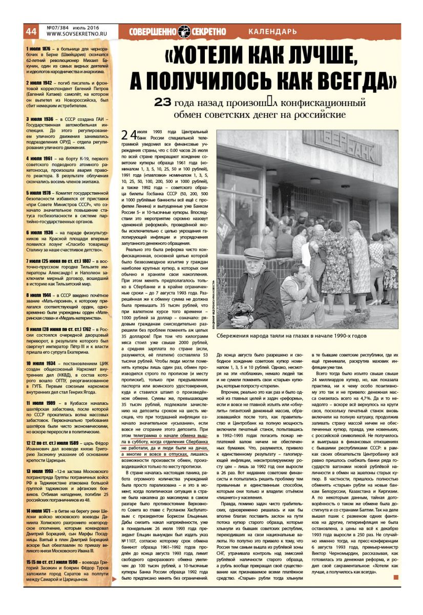 24июля 1993 года Центральный банк России специальной телеграммой уведомил все финансовые учреждения страны, что с 0.00 часов 26 июля по всей стране прекращают хождение советские купюры образца 1961 года (номиналом 1, 3, 5, 10, 25, 50 и 100 рублей), 1991 года («павловки» номиналом 1, 3, 5, 10, 25, 50, 100, 200, 500 и 1000 рублей), а также 1992 года – советского образца билеты Госбанка СССР (50, 200, 500 и 1000 рублёвые банкноты всё ещё с профилем Ленина) и выпущенные уже Банком России 5- и 10-тысячные купюры. Впоследствии это мероприятие скромно назовут «денежной реформой», проведённой якобы исключительно с целью укрощения галопирующей инфляции и упорядочения запутанного денежного обращения.