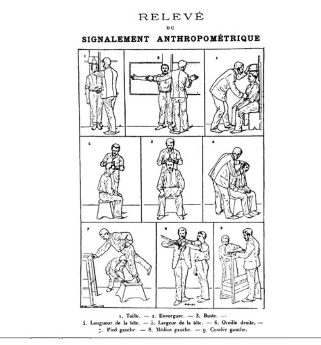 Бертильонаж – система, названная так по имени своего изобретателя, основывается на девяти ключевых показателях. Это замеры роста, длины туловища, конечностей, ушей, словом, всех частей тела. До того, как она была изобретена, никому в голову не приходило измерять эти показатели, обычно личные карточки преступников заполнялись с использованием общих фраз (низкий рост, большие руки, средний нос и т.д.). Такое туманное описание было универсальным, поэтому поймать преступника было практически невозможно, равно как и идентифицировать пойманных в соответствии с этими критериями.