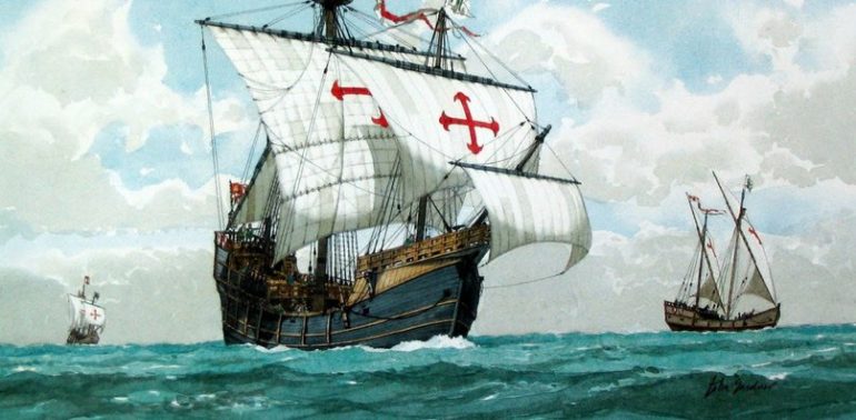 «За полтора часа до рассвета» 3 августа 1492 года путешествие началось. Девяносто человек на кораблях «Пинта», «Нинья» и «Санта-Мария» вышли из порта Палоса. Они собирались открыть путь в Индию (в команде был даже переводчик восточных языков), но им предстояло сделать куда более выдающиеся открытия.