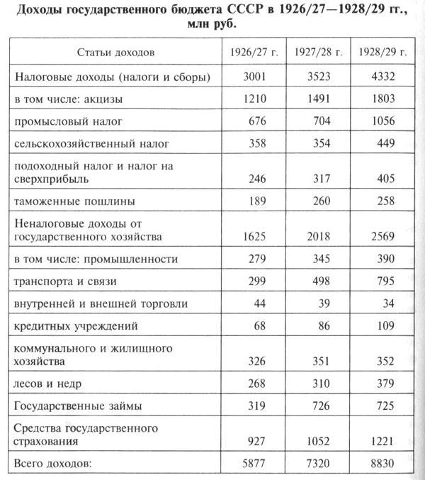 Таблица 12. Доходы государственного бюджета СССР в 1926/27—1928/29 гг., млн руб.