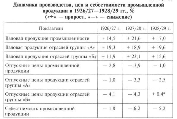 Правительственная политика цен была методом аккумуляции ресурсов для казенного сектора экономики. По экспертной оценке Ш.Я. Турецкого, в 1927/28 г. средний уровень себестоимости промышленной продукции по отношению к 1913 г. составлял 1,7, а индекс цен стоял на отметке 1,85. При вздорожании средней себестоимости продукции тяжелой промышленности более чем в 2 раза индекс ее отпускных цен не превышал 1,7. Легкая индустрия развивалась в другой ситуации. Сводная статистическая себестоимость ее изделий увеличилась по сравнению с предвоенной в 1,7—1,75 раза, а индекс отпускных цен этих товаров удвоился. «Средняя норма прибыли, — по мнению автора, — в наших условиях резко модифицировалась в сторону изъятия доминирующей доли накопления по линии легкой индустрии»38.