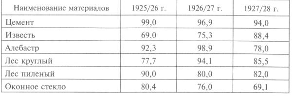Таблица 21. Степень удовлетворения потребности в конструкционных материалах в 1925/26—1927/28 гг., %
