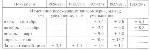 Таблица 2. Динамика кредитования хлеботорговых операций и объемов переходящих запасов зерна в 1924/25—1928/29 гг.