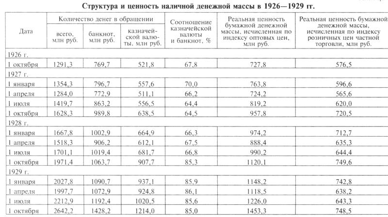 Таблица 6. Структура и ценность наличной денежной массы в 1926-1929 гг.