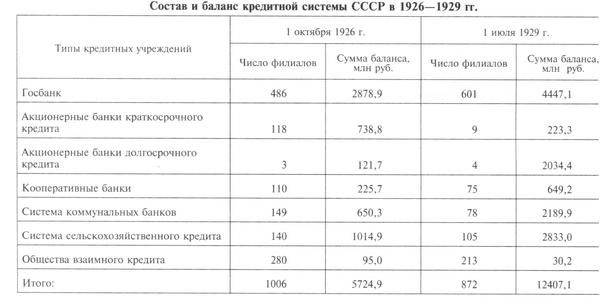 Таблица 9. Состав и баланс кредитной системы СССР в 1926-1929 гг.