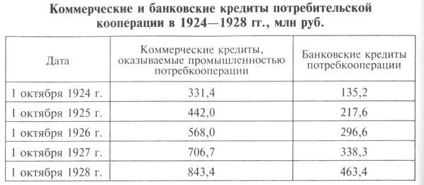 Таблица 10. Коммерческие и банковские кредиты потребительской кооперации в 1924—1928 гг., млн руб.