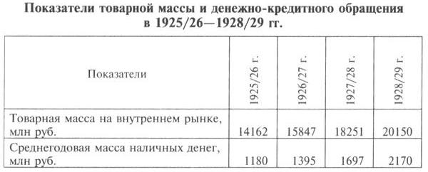 Таблица 19. Показатели товарной массы и денежно-кредитного обращения в 1925/26-1928/29 гг.