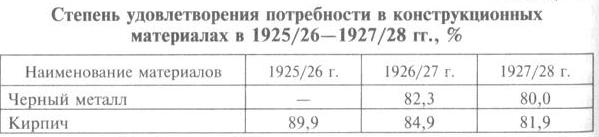 Таблица 21. Степень удовлетворения потребности в конструкционных материалах в 1925/26—1927/28 гг., %