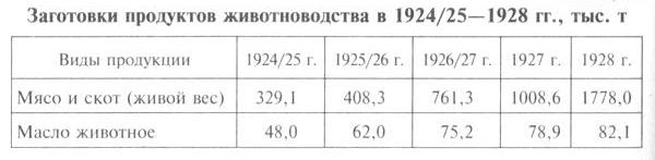 Таблица 3. Заготовки продуктов животноводства в 1924/25—1928 гг., тыс. т