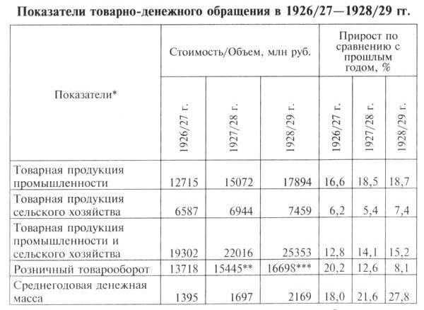 Таблица 5. Показатели товарно-денежного обращения в 1926/27—1928/29 гг.