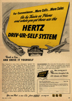 После войны в автомобильной промышленности произошел настоящий бум. Все чаще для деловых целей начали использовать авиалинии и, следовательно, среди бизнесменов большую популярность стал приобретать прокат авто. Предвидя перспективы, Хертц стал одним из первых новаторов данной услуги. Он в 1932 году разместил в аэропорту Чикаго стойку и открыл офис прокатной компании. С этого времени услуги по аренде автомобилей получили свое распространение — сейчас стойки и офисы присутствуют в каждом аэропорту.