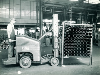 В начале статьи мы уже упоминали, что первый погрузчик был произведен в Америке рабочими литейного завода, работающими на компании Clark Equipment Со. В 1917 году. Фактически, это была машина для перевозки необработанного литья и песка, представляющая собой трехколесную тележку с платформой и двигателем внутреннего сгорания.