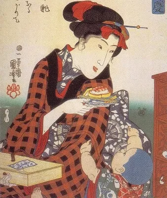 Только в шестнадцатом веке перебродивший рис из маринованной рыбы начали употреблять в пищу, и поете-пенно он превратился в главный и неотъемлемый компонент суши. Рис стали добавлять в грибы, овощи и другие продукты, получая новые блюда с необычным и специфическим вкусом. К этому времени были изобретены способы ускоренной ферментации риса, позволявшие ему приобретать новые вкусовые качества не за месяцы и годы, а за считанные дни. Б семнадцатом столетии появилось уже настоящее рисовое суши, в состав которого входили вареный рис, рисовый солод, морепродукты и овощи. Так из служебного компонента для маринования рыбы перебродивший рис превратился в основу нового блюда.