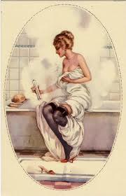 В домах европейских богачей межвоенного периода ванные комнаты облицовываются мрамором, вокруг – сверкание зеркал и блеск хромированных поверхностей. Это, так называемый, “стиль Ар Деко”. Электрическое освещение, слуховое окно для вентиляции. Пространство организуется самым декоративным элементом – ванной. Она высекается из цельного куска мрамора или облицовывается мрамором; водопроводный кран подаёт приятную, нужной температуры смесь горячей и холодной воды.