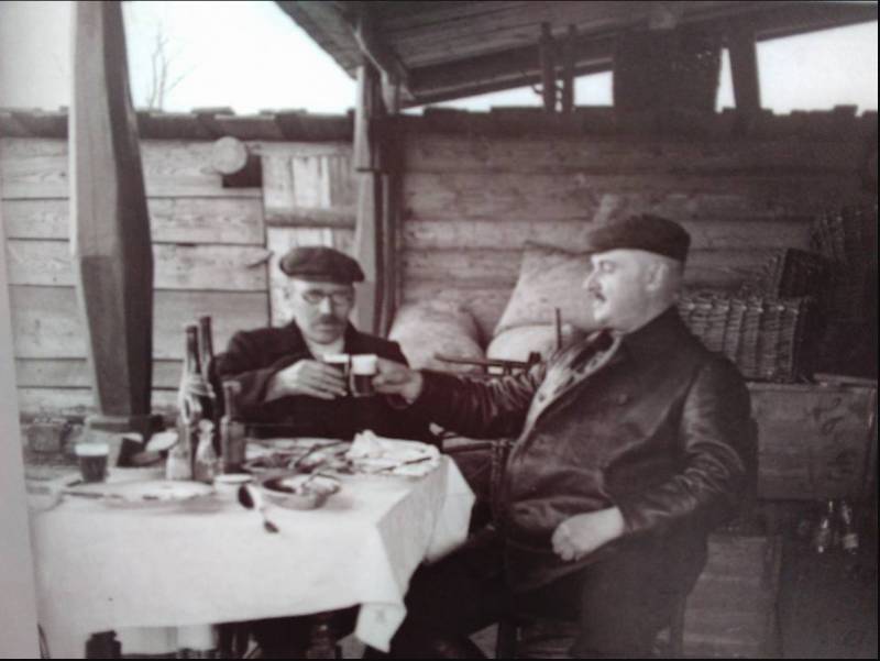 А.Бренинг (справа) выпивает с другом (слева) Свияжск 1915