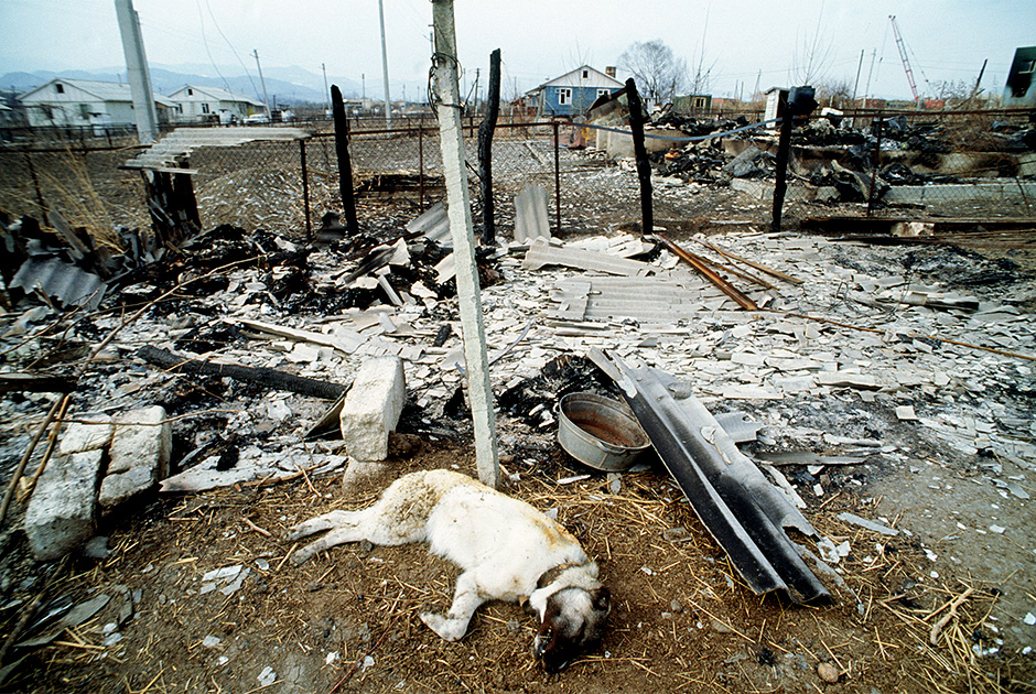 «Глаз вырывает из месива тел две фигурки – бабушки и маленькой девочки. Бабушка, с седой непокрытой головой, лежит лицом вниз рядом с крошечной девочкой в голубой курточке с капюшоном. Ноги у них почему-то связаны колючей проволокой, а у бабушки связаны еще и руки .Обе застрелены в голову. Последним жестом маленькая, лет четырех, девочка протягивает руки к убитой бабушке. Ошеломленный, я даже не сразу вспоминаю о камере», — делился Романов увиденным в мемуарах.