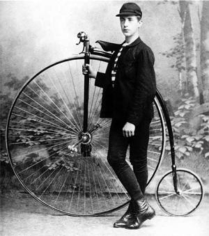 Но судьба тележки Артамонова оказалась печальной: она была присоединена к царской коллекции редкостных вещей и вскоре забыта. Второе рождение велосипеда состоялось в 1808 году в Париже, где появился двухколесный самокат без рулевого управления. Седок передвигался, по очереди отталкиваясь ногами от земли. Несмотря на свое несовершенство, это транспортное средство развивало довольно большую скорость, за что и получило свое название: “велосипед”, в переводе с латинского – “быстрые ноги”. В 1817 году немец К. Дрез установил на велосипеде рулевое управление, а в 50-х годах XIX века его соотечественник Ф. Фишер оснастил переднее колесо шатунами и педалями. Так была заново возрождена схема Артамонова. Стремясь увеличить быстроходность велосипеда, конструкторы стали делать переднее колесо больше (до 180 см), заднее же колесо оставалось маленьким (около 30 см). Так получилась машина, которую назвали “паук”.