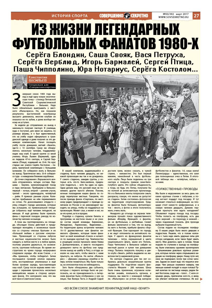За неделю до отправления на выезд я наконец-то получил паспорт. В училище, куда я поступил, для меня не нашлось по размеру формы, и я был единственный, кто на учёбу ходил официально в гражданской одежде и даже получил за это денежную компенсацию. Начал посещать учёбу после домашних матчей «Зенита», где-то с 10 сентября. Сразу же обнаружилось несколько человек, поддерживающих наш клуб. В одной группе со мной учились Игорь Лыжин (Бармалей), один из лидеров 47-го сектора, и Сергей Берников (Птица), ходивший на 33-й. На курс старше нас учился Серёга Костолом – парень приличной комплекции с большими кулаками. Он собирался ехать в Вильнюс на выезд. Практически весь 33-й собирался туда – в неведомое ближнее зарубежье.