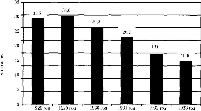 Яркой иллюстрацией последствий коллективизации и «раскулачивания» в деревне являются даже открытые официальные советские данные о падении поголовья скота.