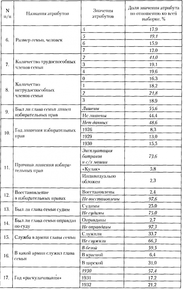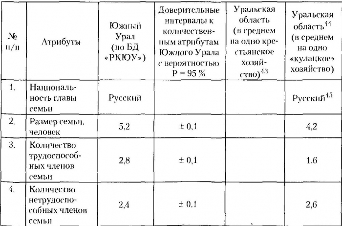 Исходя из данных нашей выборки, мы можем реконструировать социальный портрет «раскулаченных» крестьян Южного Урала, представленный в следующей таблице: