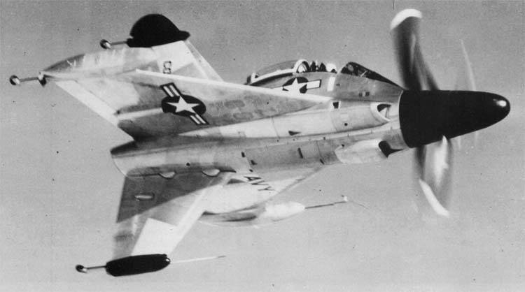 В центральной части фюзеляжа, непосредственно под кабиной пилота, находился турбовинтовой двигатель Allison YT40-A-6 мощностью 5100 л.с. Подача атмосферного воздуха к двигателю осуществлялась при помощи двух заборных устройств, помещенных на бортах перед кромкой крыла. На днище предусматривался воздухозаборник радиаторов. К сопловому аппарату двигателя крепилась труба, доходившая до хвостовой части фюзеляжа и выводившая реактивные газы наружу. Летательный аппарат оснастили двумя соосными трехлопастными винтами диаметром 4,88 м, разработанными компанией Curtiss-Wright. Лопасти крепились на общей втулке сравнительно сложной конструкции. Привод винтов оснащался гидравлическим тормозом.
