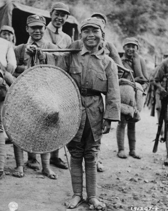 Китайский мальчик, который вступил в вооруженные силы, чтобы помочь солдатам 39-й китайской дивизии во время боев за Салуин, Китай, 1944.