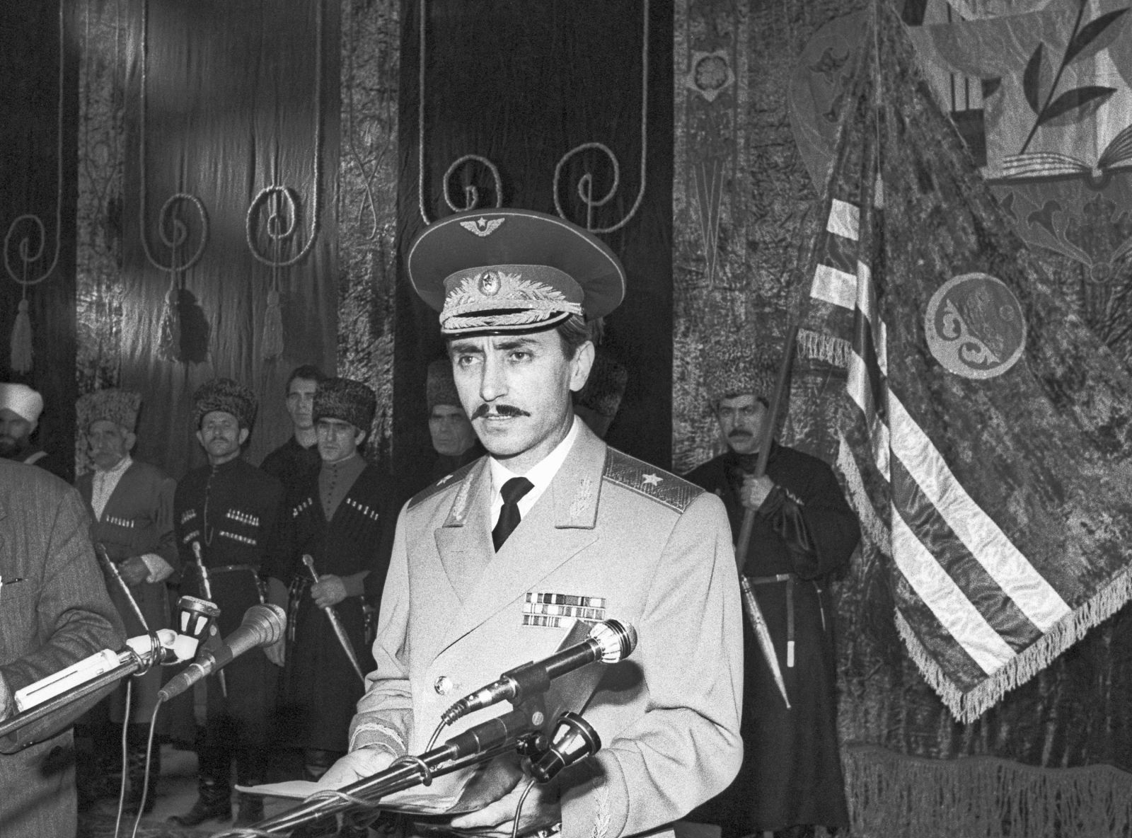 На фото: ДЖОХАР ДУДАЕВ ВО ВРЕМЯ ПРИНЯТИЯ ПРИСЯГИ, 1991 ГОД