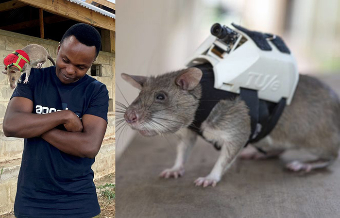 Любознательный характер и отличное обоняние превратили этих врагов человека в идеальных ищеек и спасателей. Крыс тренируют в смоделированной зоне бедствия, где они должны найти свою цель, потянуть переключатель на своём жилете, чтобы вызвать звуковой сигнал, а затем вернуться на базу, где они будут вознаграждены лакомством. У каждого крошечного члена команды есть рюкзачок с камерой, передатчиком местоположения и двусторонним микрофоном, который помогает выжившим общаться со спасателями.