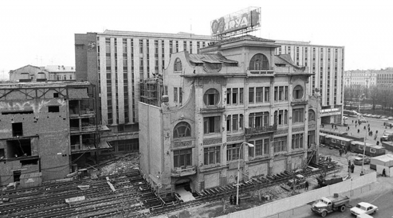 В США к этому времени была перемещена восьмиэтажная телефонная станция весом 11 тысяч тонн. У нас сработал принцип «перегнать и обогнать», наш дом весил 23 тысячи тонн. Когда всё было готово к переезду, жильцы попросили, чтобы их предупредили о начале переезда, чтобы пережить неспокойный момент у родственников. Только вот работники треста дали ложные сроки перемещения и провели всю операцию ночью. Результат впечатлил всех. Многие домочадцы узнали, что они переехали на новое место только утром. Очевидцы рассказывают, что дом двигался так плавно, что в одной квартире уцелела башенка из кубиков, сложенная ребёнком. Желающие и сегодня могут увидеть бывшее Саввинское подворье, которое прячется между домом №6 по Тверской улице и новым зданием МХТ по Камергерскому переулку. Самым трудоёмким стал переезд здания Моссовета – того самого, где сейчас расположилась мэрия Москвы (Тверская, 13). Дом передвинули на 14 метров, но сложность заключалась в том, что передвинули-то вместе с подвалом