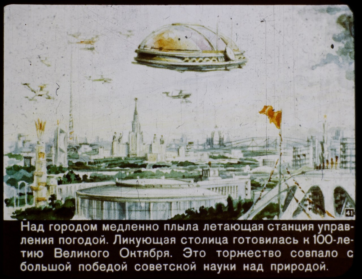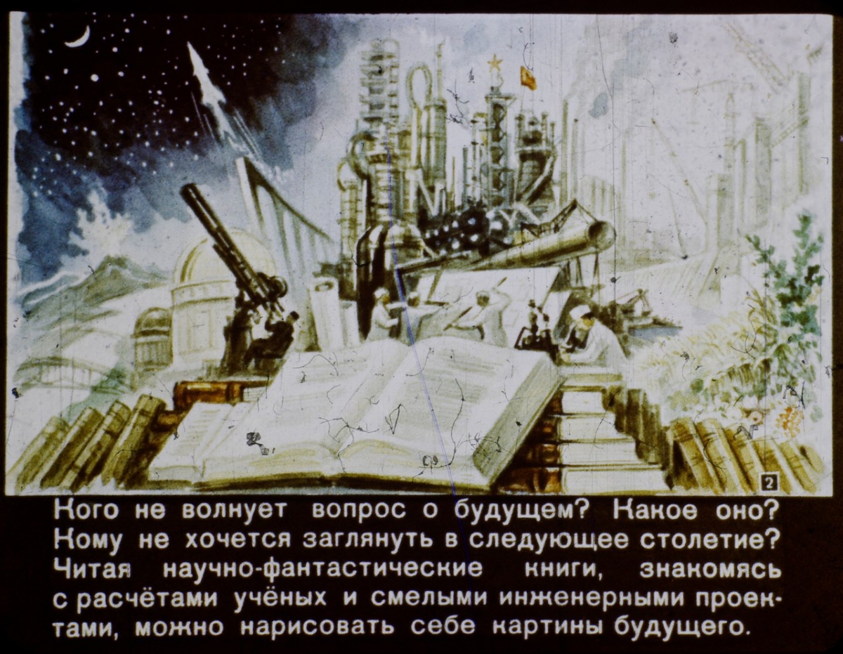 Многое осталось лишь грандиозными проектами – переброска сибирских рек, перегораживание Берингова пролива плотиной, управление погодой и изменение человеком климата (создатели диафильма явно не имели в виду "парниковый эффект"). Не оправдали всех надежд и в освоении космоса. Не сбылись плавучие детские сады и подземные города с кварцевым солнцем.