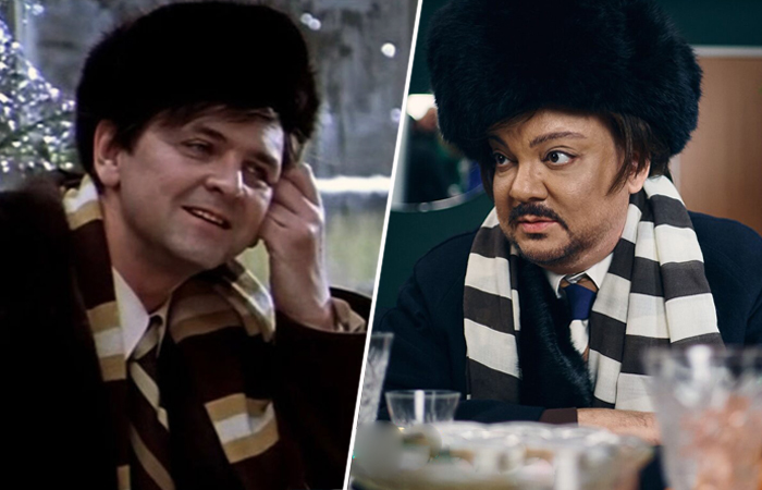 Конечно, главное место среди всех новогодних фильмов по праву занимает комедия Эльдара Рязанова «Ирония судьбы, или С лёгким паром», вышедшая на экраны почти 47 лет назад. В связи с тем, что новогодний стол (или его подготовка) не обходятся без Жени Лукашина, Нади Шевелёвой, Ипполита и Гали, невесты главного героя, на канале ТНТ решили слегка обновить культовый фильм и превратить его в новогоднее шоу. Правда, на выходе получился настоящий коктейль, в котором нашлось место не только героям «Иронии судьбы», но ещё Шурику, шведскому послу и Ивану Грозному из фильма «Иван Васильевич меняет профессию», Леночке Крыловой из «Карнавальной ночи» и даже кадрам, пародирующим «Игру в кальмара».