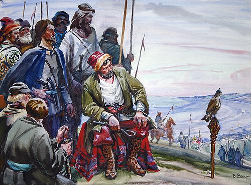 Так и вышло. Стенька после всю Астрахань разорил, а с воеводы астраханского шкуру спустил по самые пятки Из Персидской земли Стенька княжну вывез, да и милуется с ней. Товарищи давай смеяться: Видно, говорят, она тебе дороже нас стала. все с ней возишься.