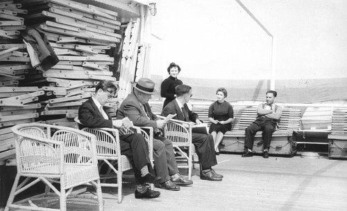Я сам видел, как в Египте полы мыли в резиденции, затем в мраморной раковине полоскали тряпку. А потом приносят глыбы льда и в этой раковине его грязным молотком колют. А потом грязными руками в графин. Приходилось или вежливо отказываться, или менять посуду и воду на чистую и проверенную. Ну и за обедом приходилось подсказывать охраняемым, что можно есть, а что нет, мы ведь следили на кухне за тем, что и как готовили… «Всем читать!» Хрущёв с охраной во время путешествия в Америку на теплоходе «Балтика», 1960