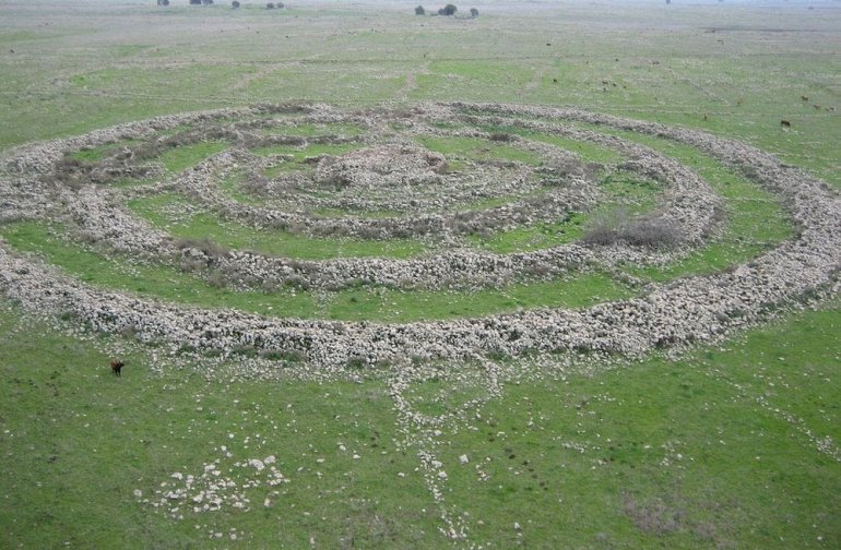 Сирийцы называли Колесо Духов Руджм эль-Хири, что с арабского языка переводится, как «каменный холм дикой кошки». На иврите его называют “колесом Рефаимов” — древних гигантов, упомянутых в Библии. Слово «рефаим» на современном иврите также означает «призраков», или «духов». Упоминание этих исполинов связано с гигантскими размерами Колеса Духов — каменный круг составляет 160 метров в диаметре. До сих пор остается тайной, кто построил Руджм эль-Хири и с какой целью.