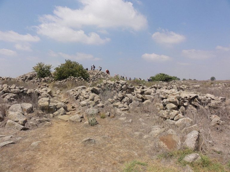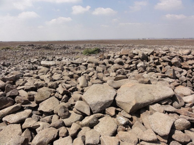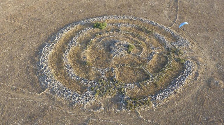 Этот древний памятник эпохи мегалита состоит из концентрических каменных кругов и холма в центре. Колесо Духов Руджм эль-Хири видно преимущественно с воздуха и едва заметно от земли. Стены достигают около двух метров высотой и только центральная насыпь слегка возвышается над общим планом. Эта загадочная достопримечательность расположена в голом поле посреди Голанских высот. Каменный памятник оставался незамеченным в течение многих веков, пока не был обнаружен израильскими археологами. Произошло это только после того, как территория была захвачена у Сирии в 1967 году.