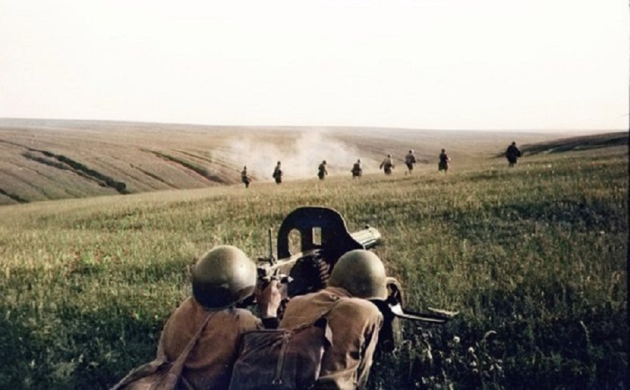 Атака советских войск на немецкие позиции в области Воронежа.