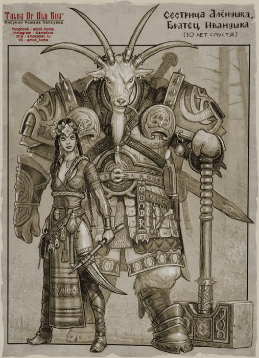 Талантливый художник Роман Папсуев, снова решил порадовать армию поклонников своим творчеством, но на этот раз, увы, не очередными иллюстрациями, придуманными для игры «Эволюция», а карандашными рисунками, на которых оживают герои русских сказок. Вот только все эти персонажи далеко не такие, какими мы привыкли их видеть, ведь автор приложил не только свой талант, но и безудержную фантазию, благодаря которой родились фэнтезийные образы Ильи Муромца, Кощея Бессмертного, Василисы Премудрой и др.