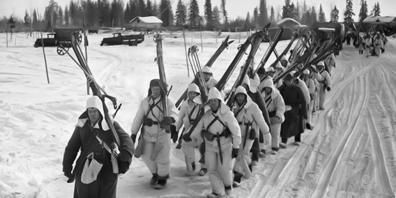 Национальный подъем в Финляндии сопровождался партизанской войной против Красной армии. Лыжные патрули замаскированных в белую форму финнов совершали неожиданные нападения на колонны противника. Советское командование начало формировать лыжные отряды (40 батальонов, 200 эскадронов) только в декабре, когда стало ясно, что наступление захлебывается.