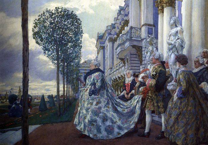 Придя к власти путем дворцового переворота в конце 1741 года, она сразу проявила себя как верная последовательница заветов своего отца – Петра I. Однако это касалось в большей степени канонов и норм западного мировоззрения. Реформирование промышленности и государственного управления как-то само собой отошло на второй план. Императрица активно насаждала любовь к французской культуре: роскошные балы следовали за маскарадами, а все это требовало гувернеров, учителей танцев, портных и специалистов по части этикета. Нескончаемая череда светских развлечений предполагала и наличие огромного гардероба.