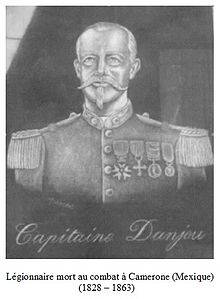 В 1861 г. французские, испанские и британские войска были направлены в Мексику. Интервенция стала ответом на прекращение платежей по мексиканским иностранным долгам. Для боевых действий в Мексике Франция задействовала, в том числе, и подразделения Иностранного легиона. 30 апреля 1863 года вблизи мексиканского селения Камерон состоялось сражение, вошедшее в историю как подлинный День славы Иностранного легиона. В течение суток единственная рота легионеров численностью 65 человек противостояла многократно превосходящим силам мексиканцев в количестве не менее 2000 бойцов. 3-я рота 1-го батальона Иностранного полка была выделена командованием для сопровождения обоза из Веракруса на Пуэбло. В транспортах находились снаряжение, деньги и оружие. Конвоем командовал капитан Жан Данжу (1828-1863). Ему было всего тридцать пять лет, но он уже имел огромный опыт участия в боевых действиях. В 1847 г. Данжу, сын офицера и владелицы небольшой фабрики, поступил в знаменитую военную школу Сен-Сир, а после ее окончания получил назначение в 51-й пехотный полк. Однако, уже в 1852 году Жан Данжу перевелся в Иностранный легион. В 1853 году он потерял руку — случайно взорвалось ружье во время топографической экспедиции в Алжире. Но Данжу установил протез и продолжил службу в Иностранном легионе. Помимо Данжу, в роте были еще 2 офицера — младший лейтенант Моде и младший лейтенант Вилэн, а также легионеры разных национальностей — французы, испанцы, итальянцы, бельгийцы, немцы и поляки. Командование поставило перед ротой задачу проводить разведку перед движением обоза, патрулировать дорогу и рассеивать засады мексиканских партизан.