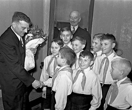 Ученики Московского хорового училища поздравляют Шостаковича с 50-летием