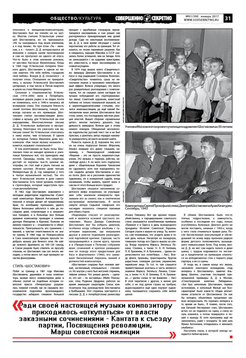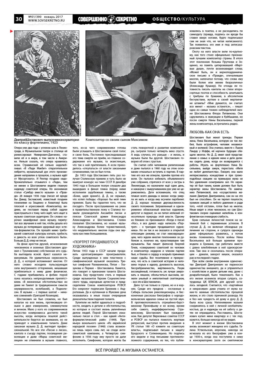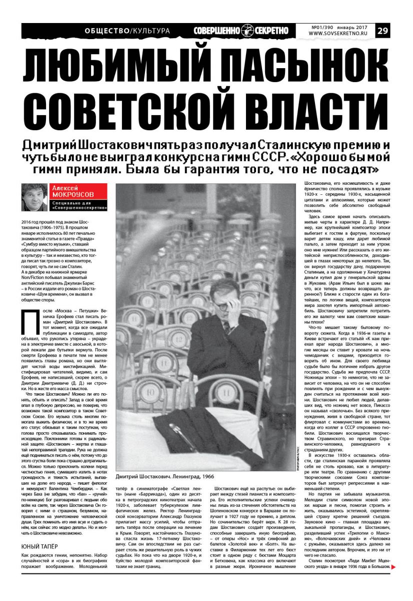 2016 год прошёл под знаком Шостаковича (1906–1975). В прошлом январе исполнилось 80 лет печально знаменитой статье в газете «Правда» «Сумбур вместо музыки», ставшей образцом партийного вмешательства в культуру – так и неизвестно, кто тогда писал так грозно о композиторе, говорят, чуть ли не сам Сталин. А в декабре на книжной ярмарке Non/Fiction побывал знаменитый английский писатель Джулиан Барнс – в России издали его роман о Шостаковиче «Шум времени», он вызвал в обществе споры.