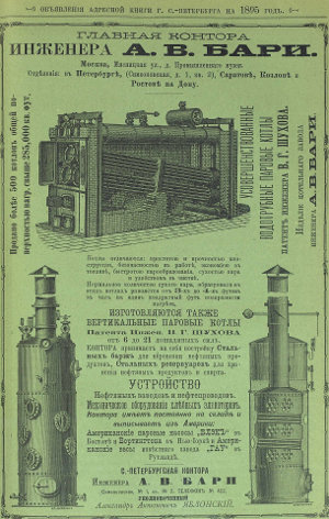 Вернувшись из США в 1877 году, Шухов поступил на работу в чертёжное бюро Управления Варшавско-Венской железной дороги в Петербурге. Вскоре вернулся в Россию и Александр Бари, прежде, ещё до отъезда в Америку, находившийся из-за близкого знакомства с Карлом Марксом под надзором полиции. Теперь надзор был снят, и Бари основал компанию, основным направлением которой стало строительство объектов российской нефтяной промышленности.