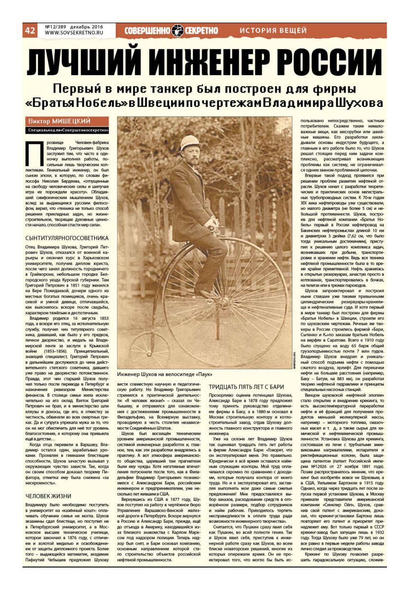 Первый в мире танкер был построен для фирмы «Братья Нобель» в Швеции по чертежам Владимира Шухова