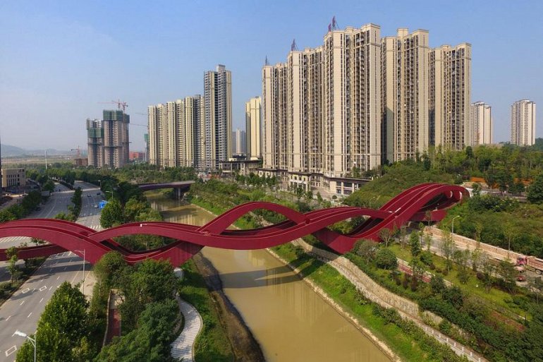 Оригинальный пешеходный мост в китайском городе Чанше был вдохновен лентой Мёбиуса, предлагая пешеходам множество различных маршрутов над рекой Короля Драконов. Мост "Узел Удачи" с многочисленными переплетениями спусков и подъемов достигает 24 метра в высоту и 185 метров в длину, открывая потрясающие виды реки, озера Мейкси, города Чанше и окружающих его горных пейзажей.