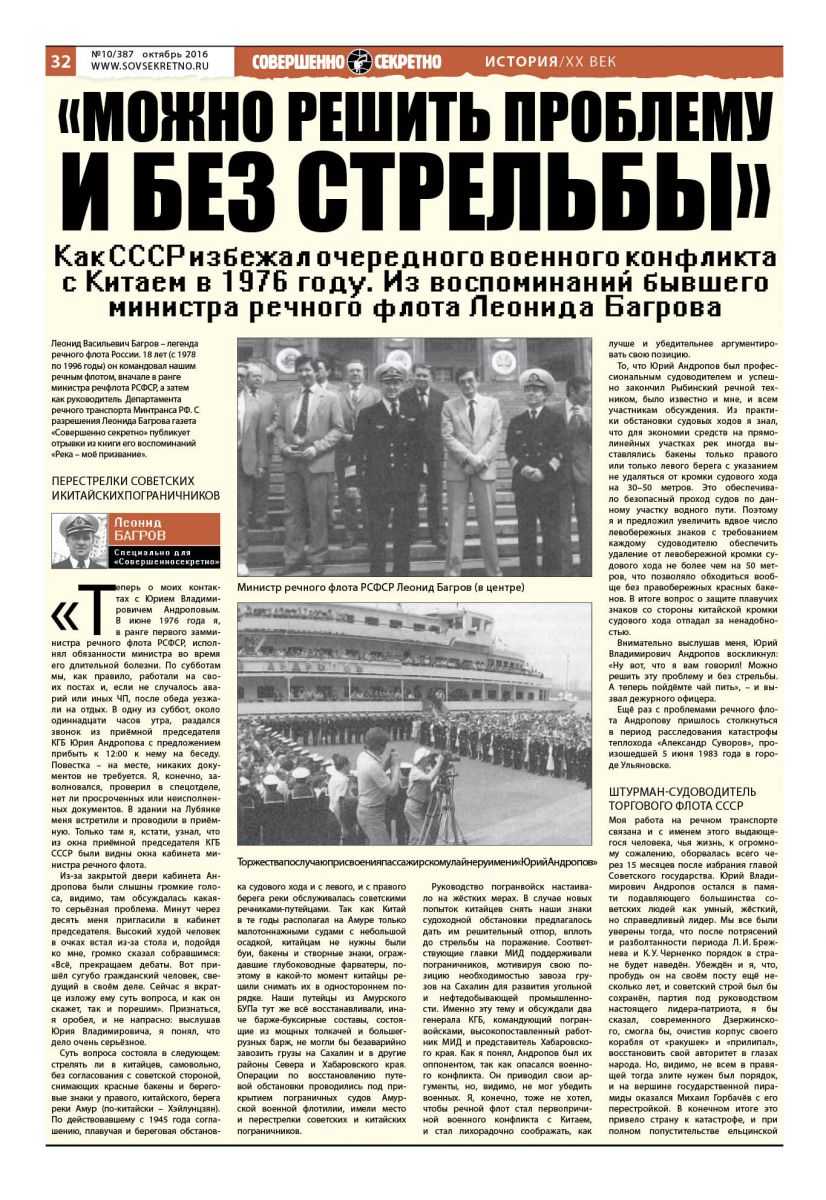 Как СССР избежал очередного военного конфликта с Китаем в 1976 году. Из воспоминаний бывшего министра речного флота Леонида Багрова