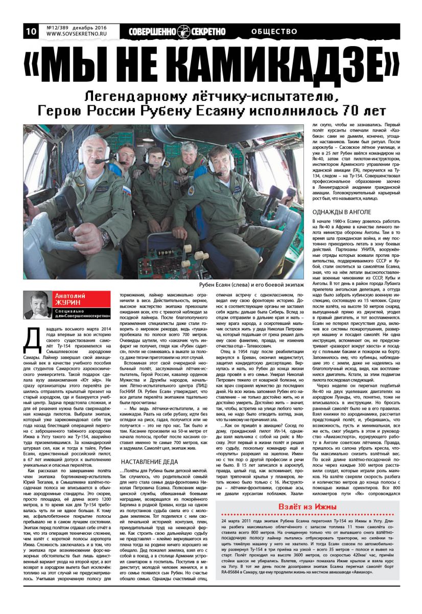 …Полёты для Рубена были детской мечтой. Так случилось, что родительской семьёй для него стала семья деда-фронтовика Николая Петровича Есаяна. Полковник медицинской службы, обвешанный боевыми наградами, возвращался из покорённого Берлина в родной Ереван, когда на одном из полустанков судьба свела его с молодым земляком. Тот поделился с ним своей печальной историей: контузия, плен, принудительный труд на немецкой ферме. Как строить свою дальнейшую судьбу не представлял – клеймо вернувшегося из плена тогда на родине ничего хорошего не обещало. Дед пожалел земляка, взял его с собой в поезд, а в столице Армении устроил санитаром в госпиталь. Поступив в мединститут, молодой человек женился, и в его семье появился сын Рубен. Но счастье обошло семью. Однажды счастливый отец, отмечая встречу с одноклассником, поведал ему свою фронтовую историю. Донос в соответствующие органы не заставил себя ждать: дальше была Сибирь. Вслед за отцом отправили в дальние края и мать – жену врага народа, а осиротевший мальчик остался жить у деда Николая Петровича, который подальше от греха решил дать ему свою фамилию, правда, не изменив отчества отца – Татевосович.
