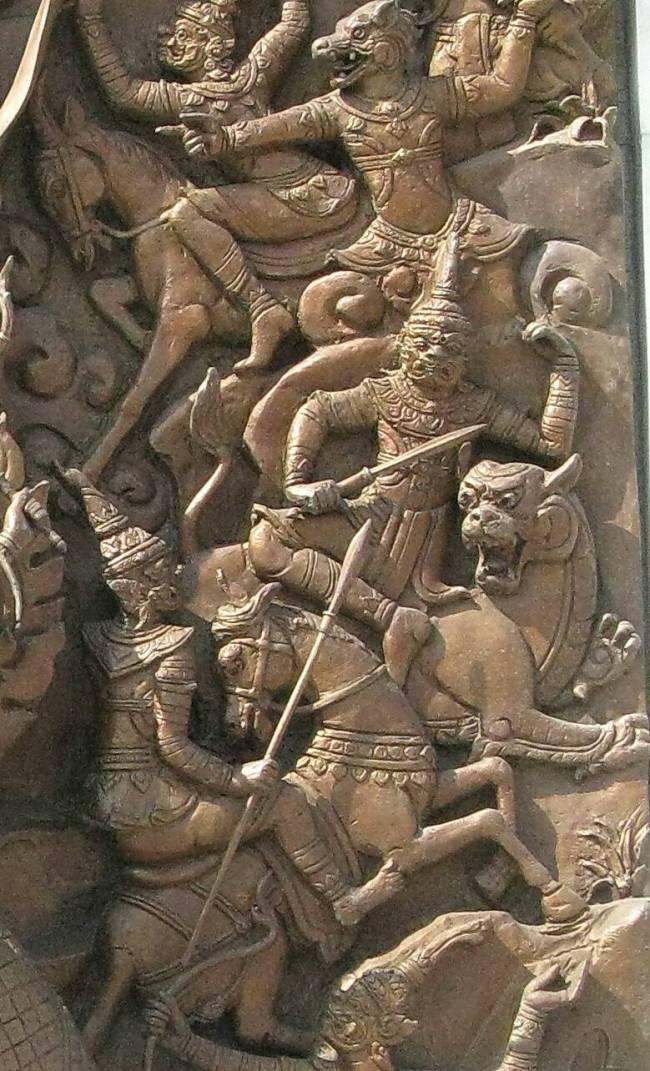 3) Повсеместно присутствующий в индийской и индокитайской скульптуре мотив всадников, к которым относились народы и герои, использовавшие в бою летательные аппараты, ядерное, сейсмическое, магическое и другое оружие почти определенно говорит о том, что общество того времени разительно отличалось от нашего, и населявшие тогда Землю народы старались жить в гармонии с природой и не развивать промышленность.