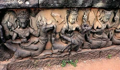 То есть, с одной стороны, изображенный на стенах храма Ангкор Ват стегозавр мог быть реальным, а не мифическим, обитателем того времени. И жить вместе с другими показанными здесь животными, а также дайтьями, данавами, адитьями и представителями старого и уже формирующегося нового человечества, корни которого тянутся в то время.