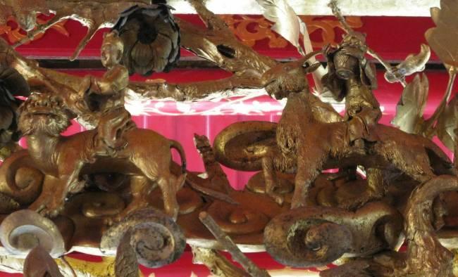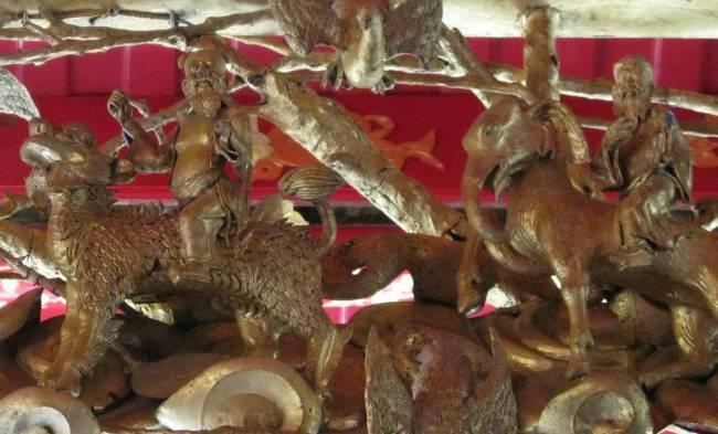 Всадники на так называемом "китайском льве" – разновидности дракона (слева) и существе между лошадью, козлом, единорогом и драконом (справа). Загородная королевская резиденция Банг-па-ин-пэлес, Таиланд.